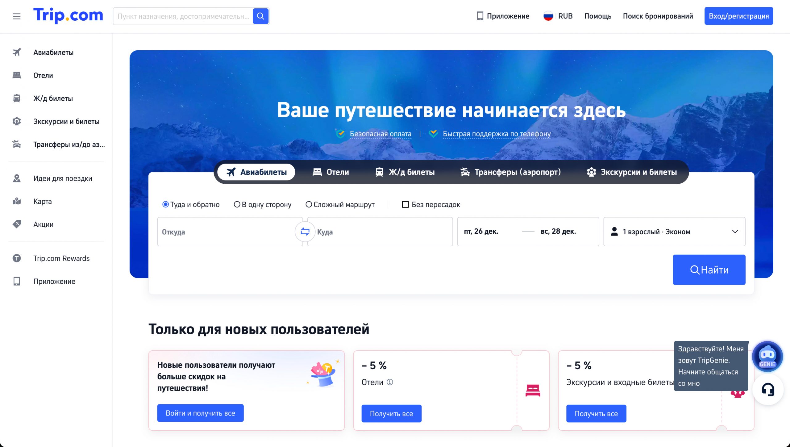 Если вы новый пользователь Trip.com, для вас доступно множество специальных предложений. Не упускайте возможность сэкономить на первом бронировании!